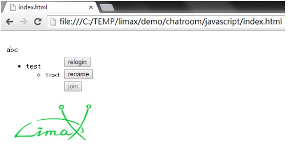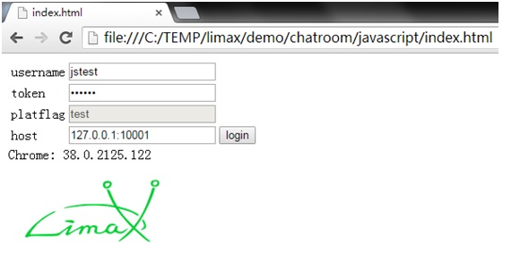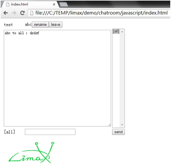 Open demo/chatroom/javascript/index.html in the browser.